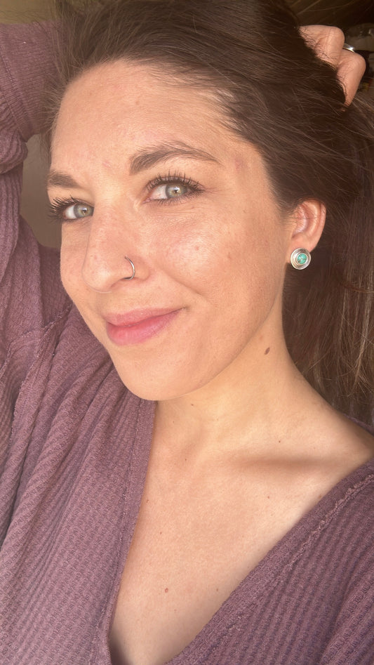 Hi y'all! I'm so happy you're here! I'm Sara Meier, the artist behind Wild & Bright Metalworks. I fell in love with working with metal back in high school in Art Metals class, and that love has been with me ever since. It only took me 14 years (yikes) to invest in the tools and supplies to finally begin making jewelry again, and that is when Wild & Bright Metalworks sprouted in the mountains of Colorado in 2022! I've always been drawn to the colors found in turquoise, which is why I choose to work primarily with turquoise. The pairing of turquoise and silver is lovely to me; I hope you think so, too! Thanks so much for being here and showing your support! xo!