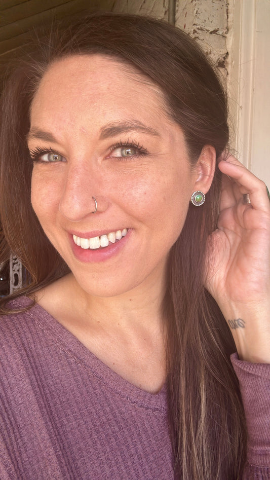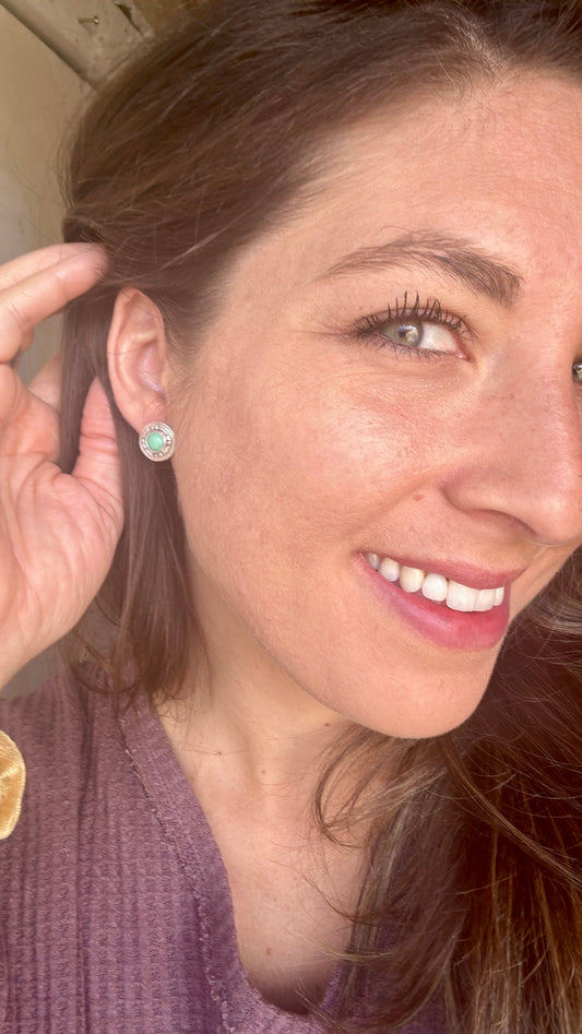 Turquoise Stud Earring Pair - Double Layer Southwest Design